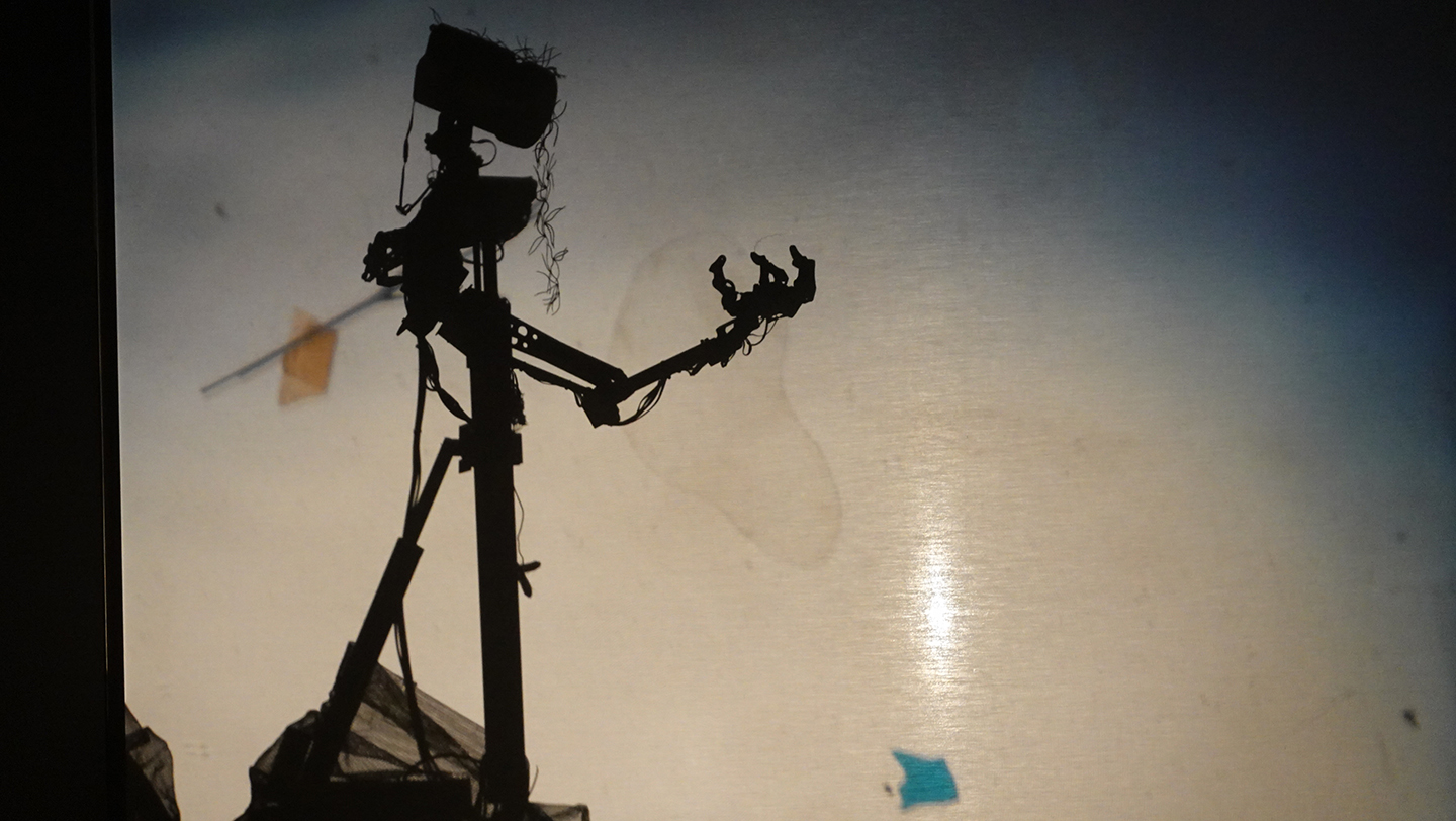 그림자로 환원되는 빛의 시선을 따라 인간을 닮은 기계들이 꿈틀거린다. 대칭을 벗어난 기형적 외팔이 로봇의 거칠고 투박한 움직임은 그림자의 중첩, 왜곡, 합성 등의 과정을 거쳐 우리에게 ‘인간적 익숙함’이란 착시적 환상을 불러일으킨다. 자동화된 무대장치이자 등장인물들로 작동하는 로봇들은 멀지 않은 미래의 기계의 구속과 같은 불안한 미래를 환기시키지만 실은 인간의 제어영역 안에 있는 구속된 기계들이다. 90년대 클럽씬의 동료들과의 기억과 거리의 소외된 사람들을 모티브로 제작된 이 로봇들은 제한된 몸짓 안에서 서로를 비추며 춤추고, 노래한다. 5인의 크리에이티브팀과 함께 제작된 이 창작극은 로봇을 이용한 메카니컬 시어터(Robotic Mechanical Theater)라는 새로운 장르를 개척하고 그 가능성을 탐구한다.